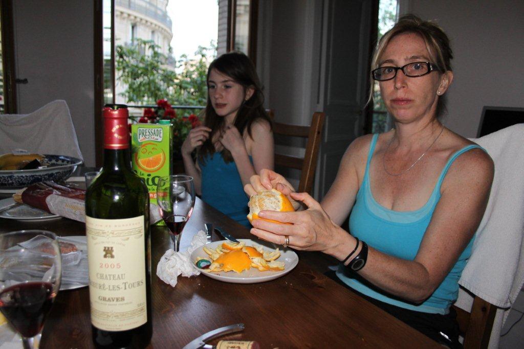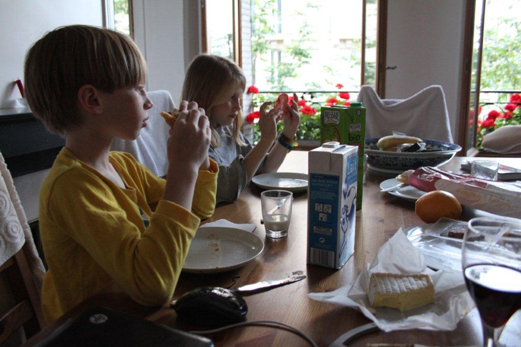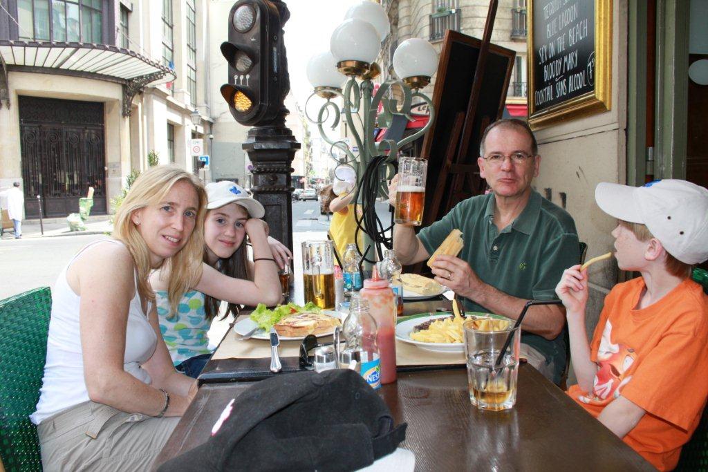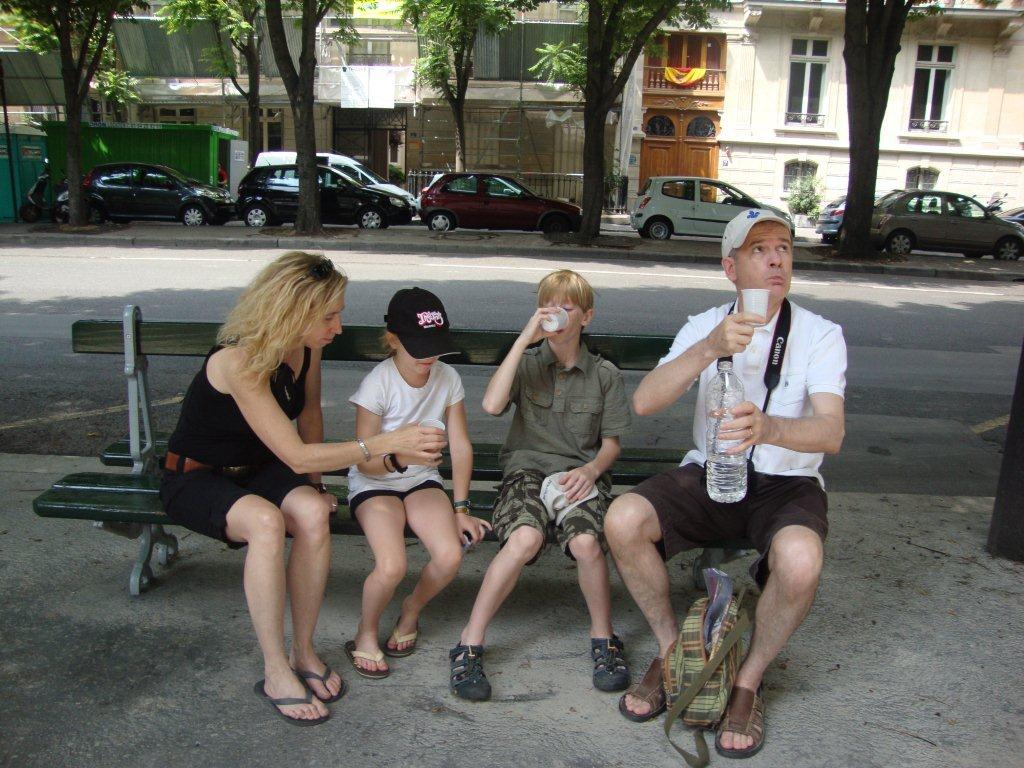 À part Vincent qui se demande toujours où on va en marchant comme ça dans Paris, nous nous sentons en assez bonne forme. Il semble que la France ait connu un printemps plutôt moche côté température, mais l’été est maintenant ici. Il fait 30 degrés et un soleil de plomb. Nous voilà à casser la croute en éclusant chacun demi litre de bière.