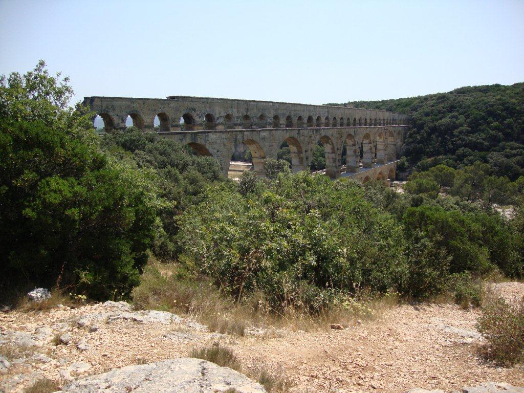 Le Pont du Gard est possiblement le deuxième point d’attrait touristique en France après la Tour Eiffel. Il s’agit en fait d’un pont aqueduc romain, et non pour la circulation, qui assurait la continuité de l’aqueduc en conduisant l’eau d’Uzès à Nîmes soit un ensemble de ponts sur près de cinquante kilomètres. Je vous assure que c’est émouvant de voir ce monument construit il y a 2000 ans. Surtout quand on pense que le dénivelé entre lepoint de départ et l’arrivée n’était que de 12,6 mètre. Colossal !