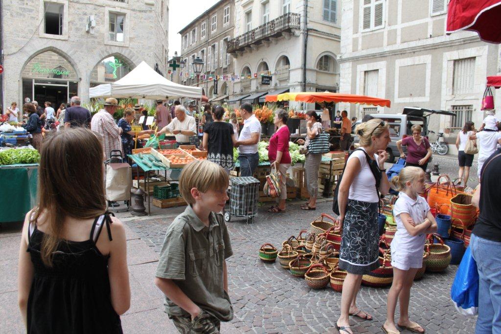 Nos amis de Saint-Lambert, les Julien-Bougie, sont en France eux aussi et nous nous sommes donnés rendez-vous au croisement de nos chemins à Cahors devant la cathédrale Saint-Étienne. C’était jour de marché, mais nous avons fini par nous retrouver quand-même.