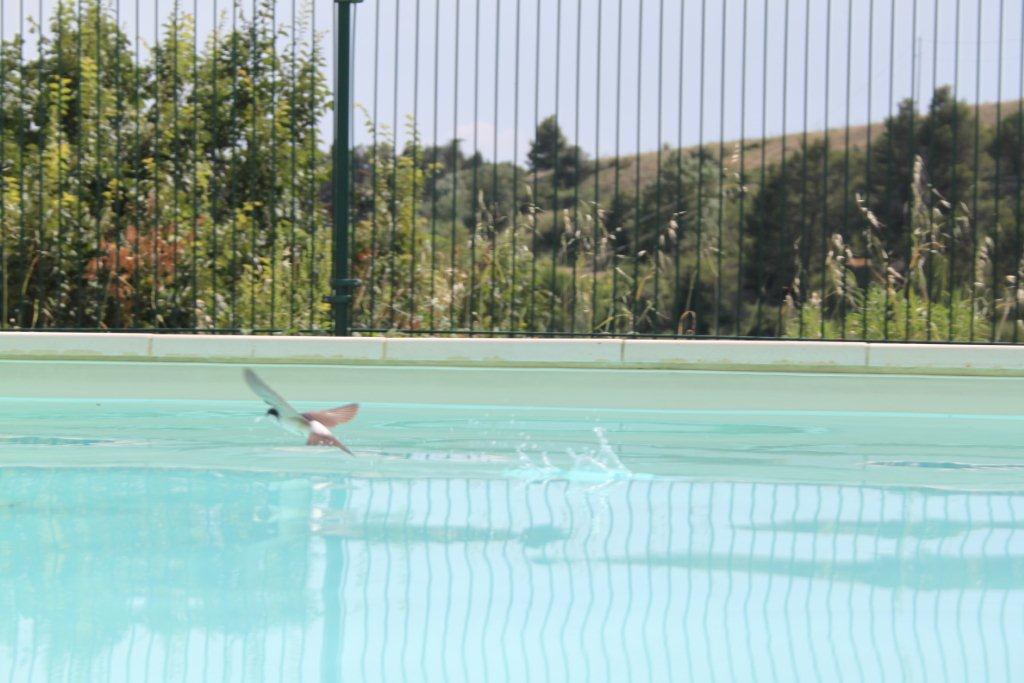 Nous avons une belle piscine où les hirondelles sont bien impatientes qu’on se casse* pour venir s’abreuver.