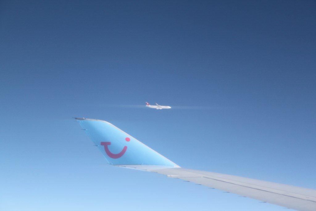 Plus tard, le pilote a tenté de se faire rassurant en nous disant que nous avons fait le bon choix de transporteur aérien lorsque nous doublons un autre avion en plein ciel !