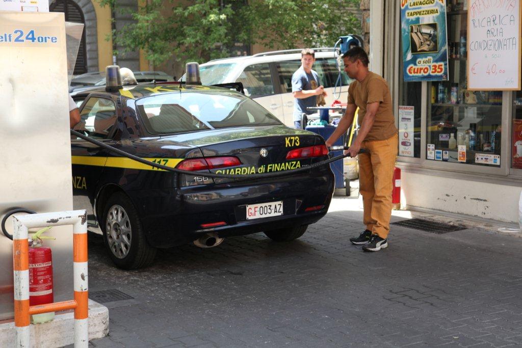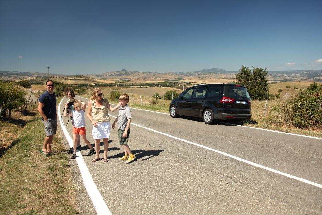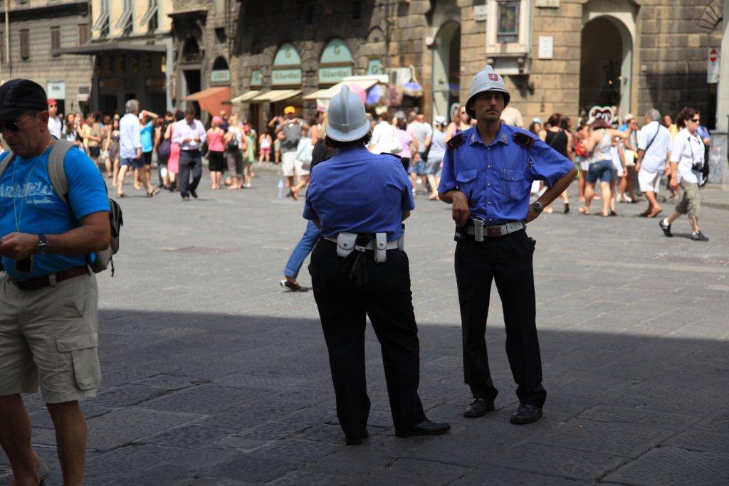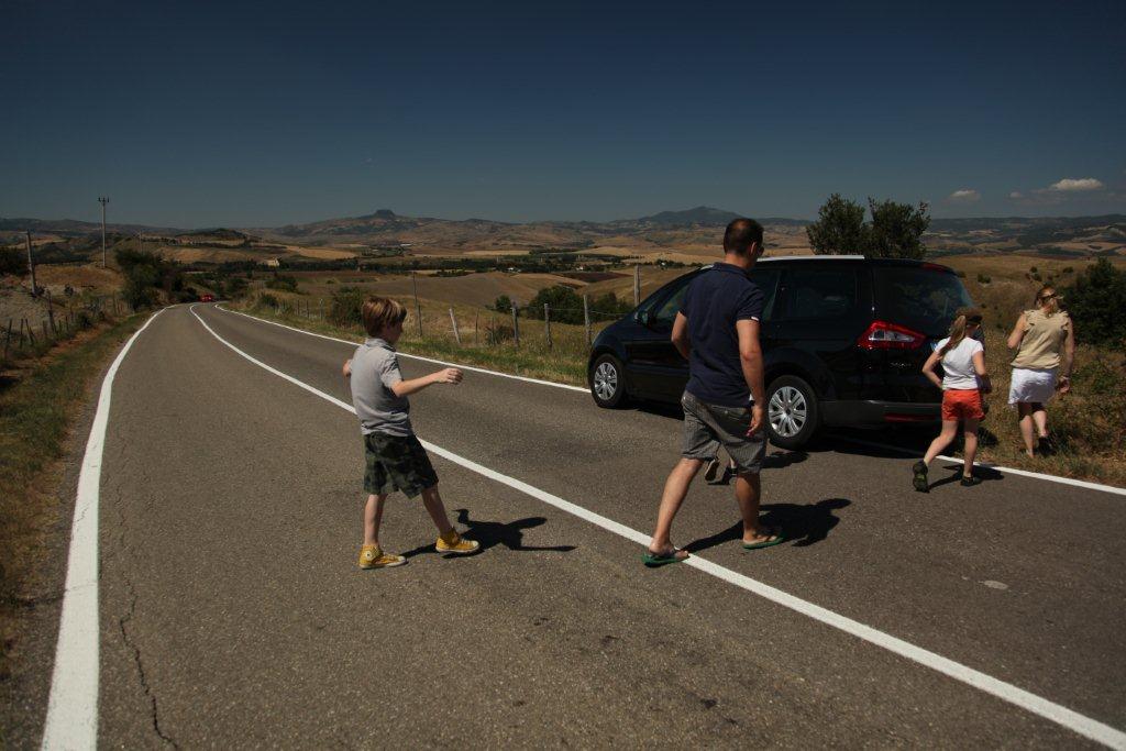 Une pause à l’ombre alors qu’une Alfa Romeo 159 (ou Alfred Romeo comme dirait Valérie) de la Carabinieri passe devant nous.