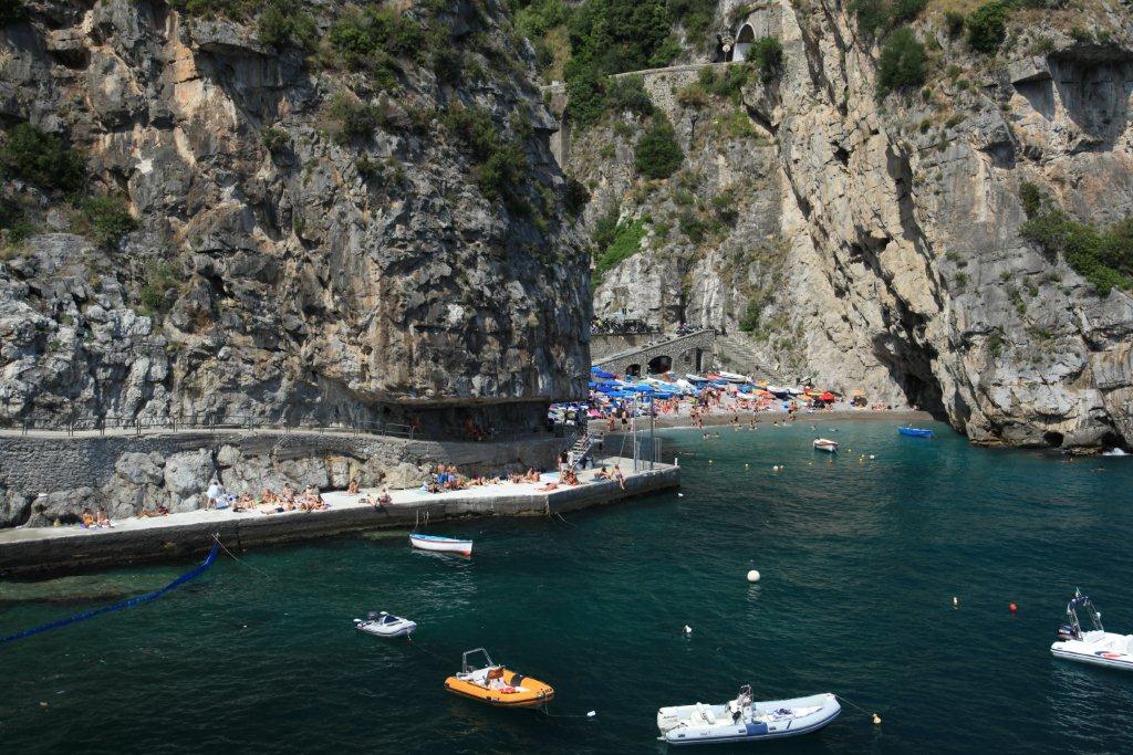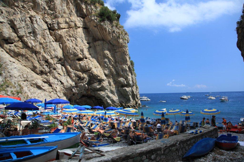 Une des deux plages de Praiano. Valérie a compté 380 marches à gravir de la plage à notre maison.
