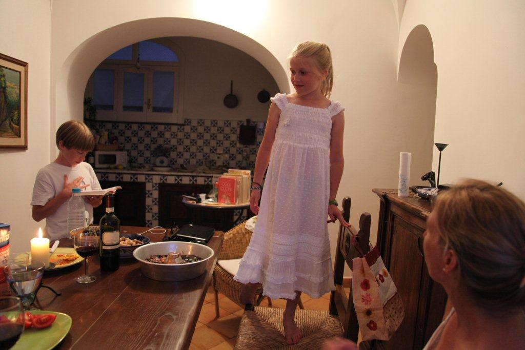 Nous avons fait ce voyage notamment pour satisfaire l’appétit vorace d’Ariane pour les pâtes, mais ce fut en vain car elle est insatiable. À l’arrivée à la maison, après un vol qui s’est bien déroulé malgré que je sois retourné à l’aéroport pour récupérer une valise laissée sur le trottoir, Valérie a dû nous servir un repas de spaghetti.