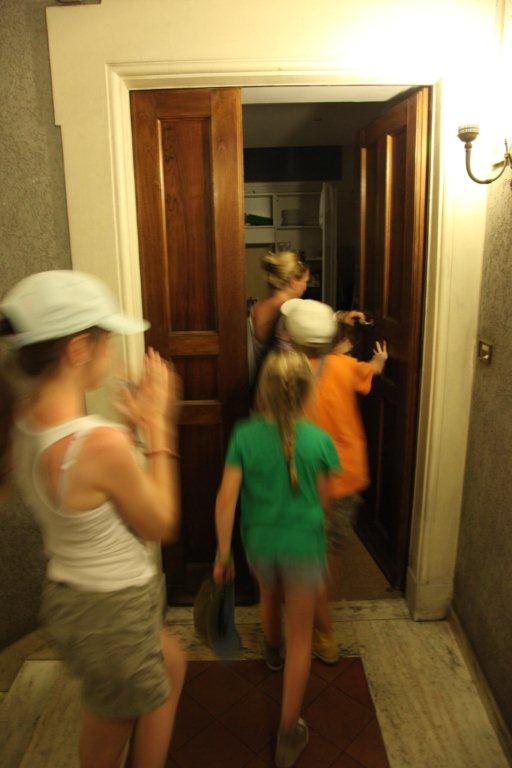 Voici la porte d’entrée de notre appartement à Rome. On a tous bien hâte d’entrer.