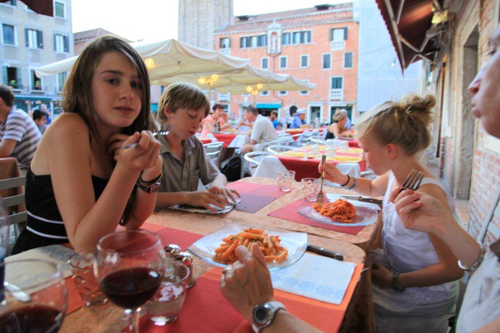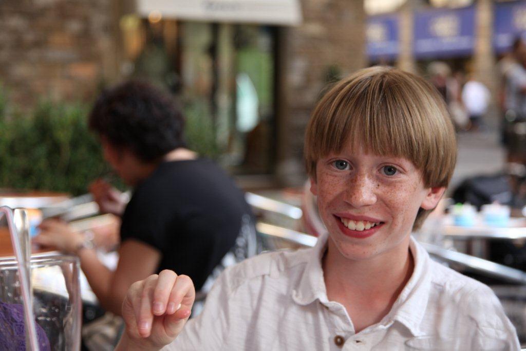 Les italiens sont adorables. Un petit garçon qui nous charme à un resto…