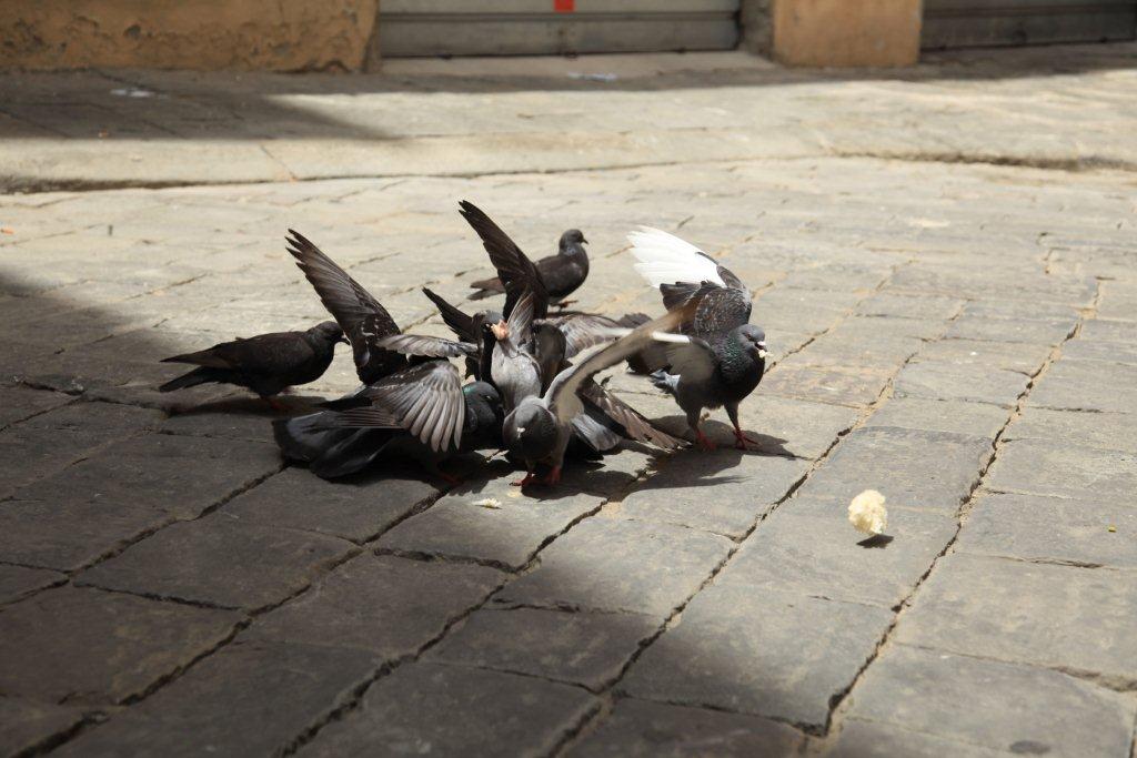 Ariane qui n’en peut plus des pigeons. Ça promet pour Venise…