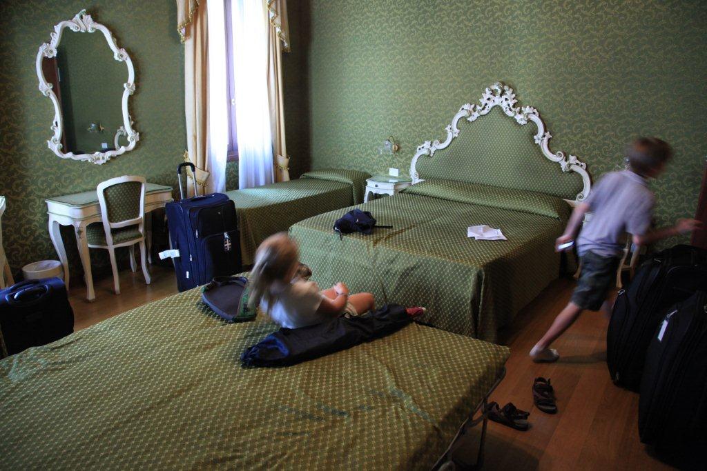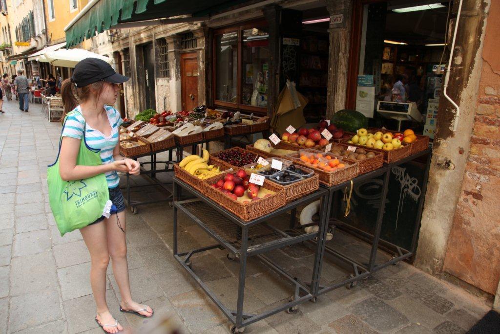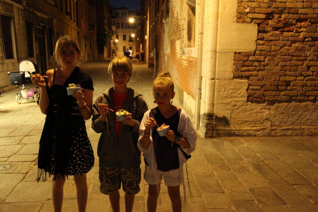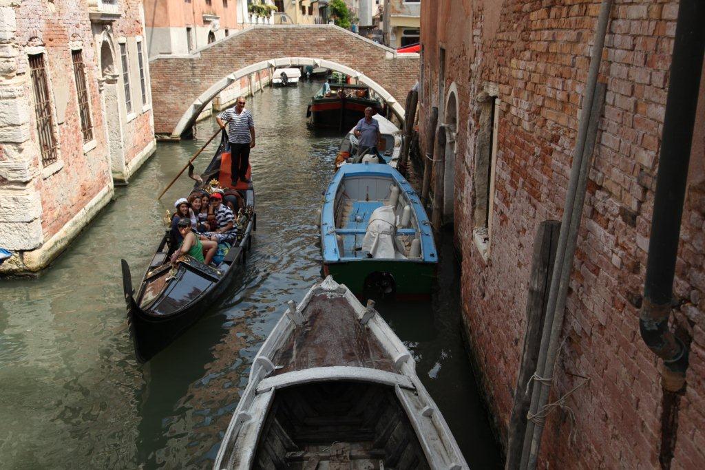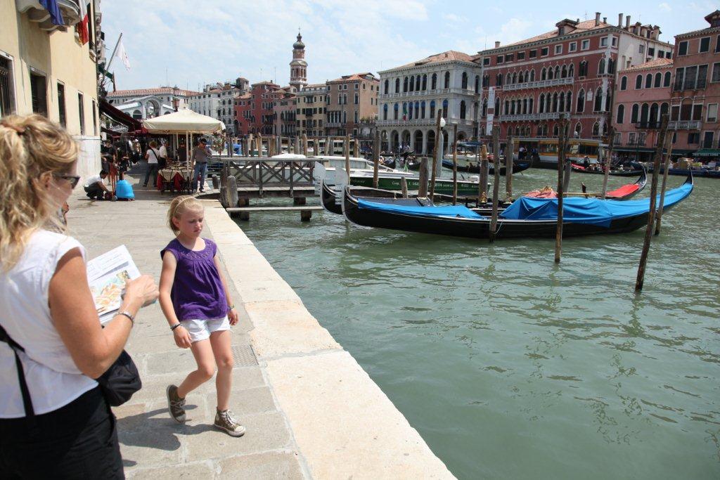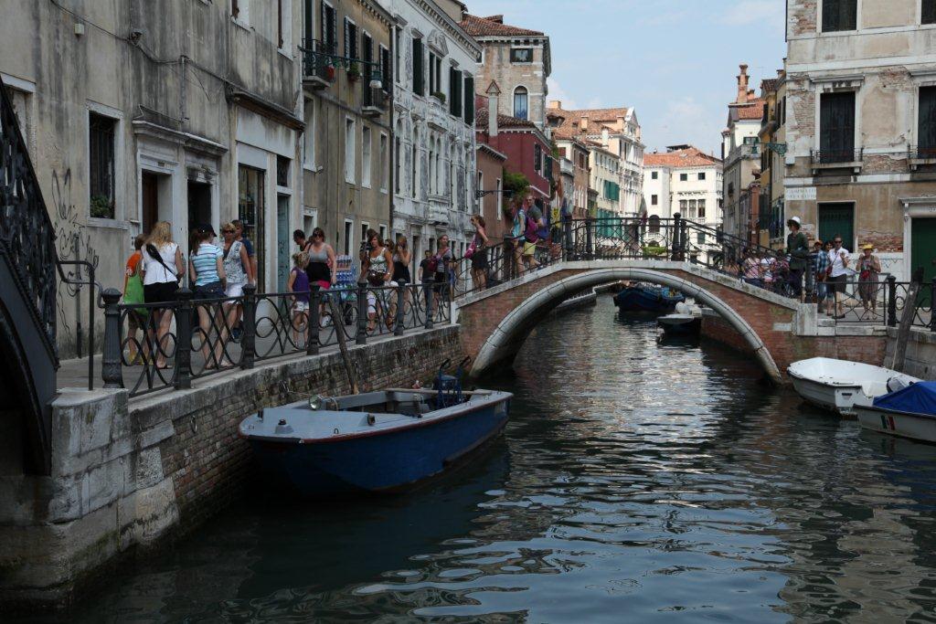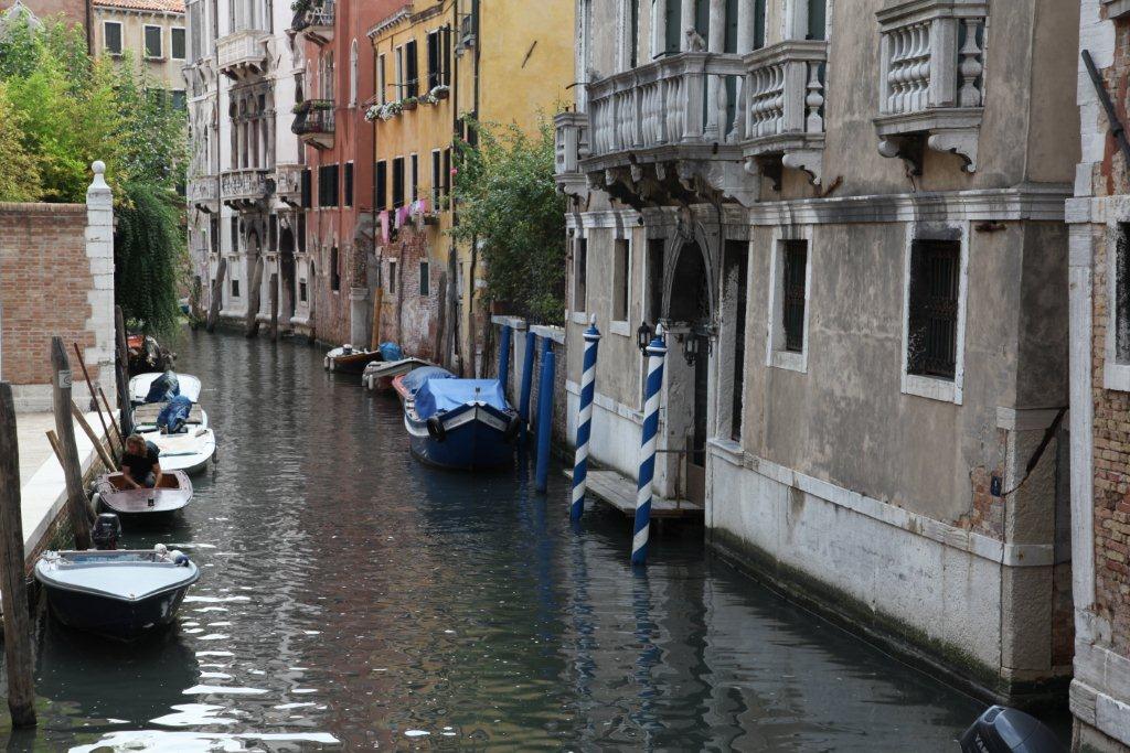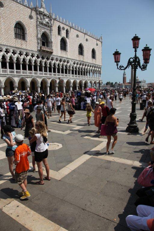 Les prévisions météo sont aussi peu fiables que chez nous, on prévoyait pour Venise un ciel nuageux avec un haut risque d’orages. Nous avons eu droit à trois journées sans nuage. La lumière est si intense qu’on cligne des yeux même avec des verres fumés.